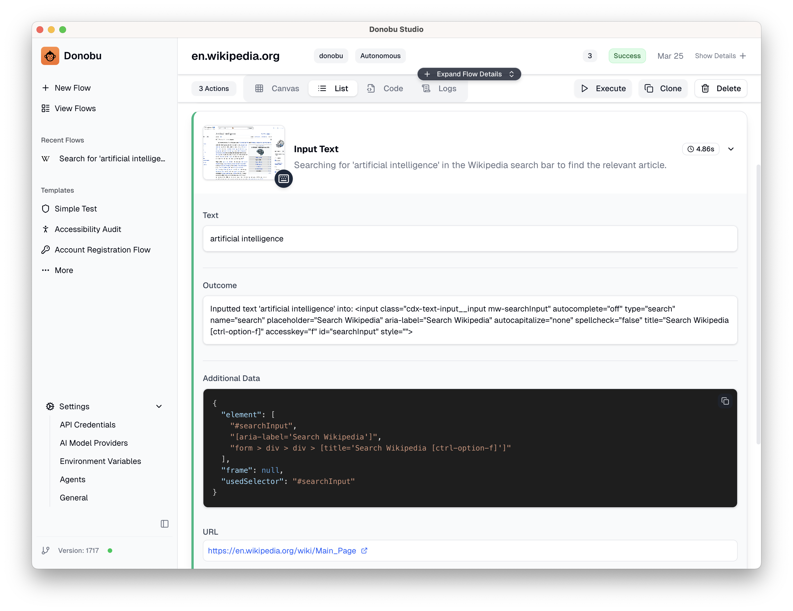 Click Submit to start the flow. Donobu will:
