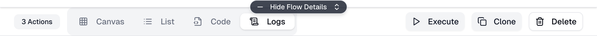 - Logs tab — Some additional details useful for debugging issues with your flow