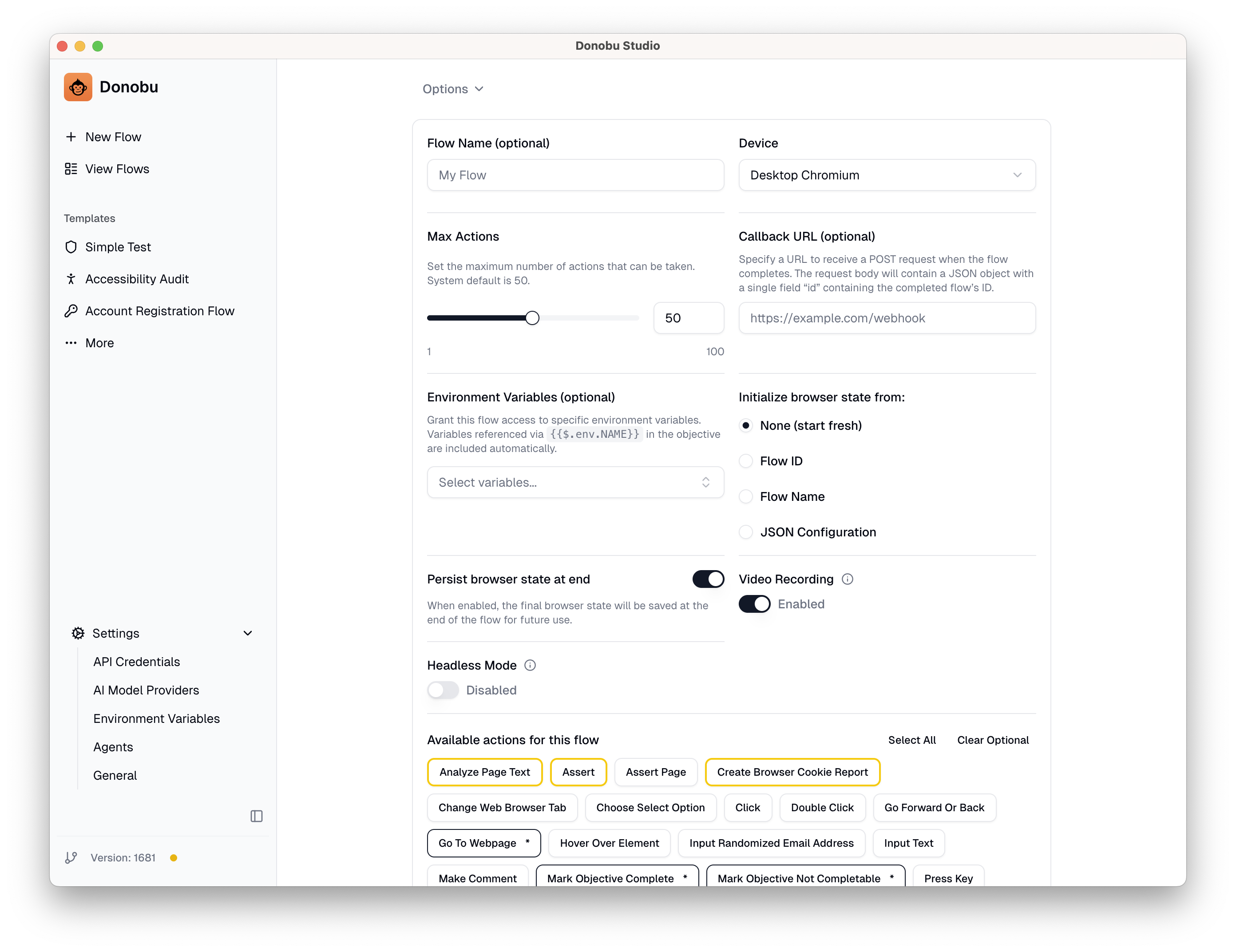 - Max Actions — The maximum number of actions Flow Pilot can take. The default works well for simple tasks; increase it for more complex multi-step flows.